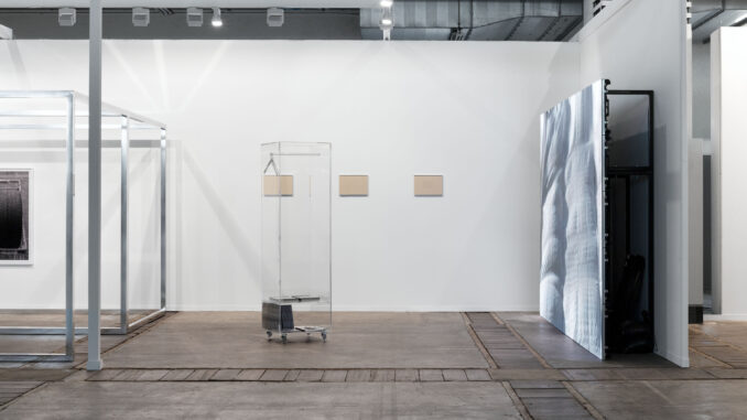 Une seule galerie wallonne sur quarante belges. Des artistes liégeois défendus par des galeries parisiennes ou bruxelloises. Un stand institutionnel qui fait le travail que le marché ne fait pas. Et dans la section Horizons, deux propositions qui jouent toutes deux sur la transparence et la contrainte architecturale — comme si l’air du temps avait dicté sa métaphore malgré les acteurs.