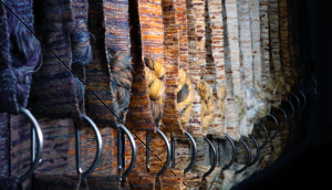 Si la confection fait parfois appel à l’entrecroisement traditionnel chaîne et trame, l’espace tissé laisse place à des espaces vides, apanages de la dentelle ; les fils eux-mêmes ne sont pas de même épaisseur car ils mêlent coton, lin, laine… créant des reliefs, affichant des textures variées ; ces fils peuvent être simplement laissés pendants effilochés, nus ou torsadés, dans une verticalité libérée ; des éléments étrangers comme des morceaux de métal sont incorporés.