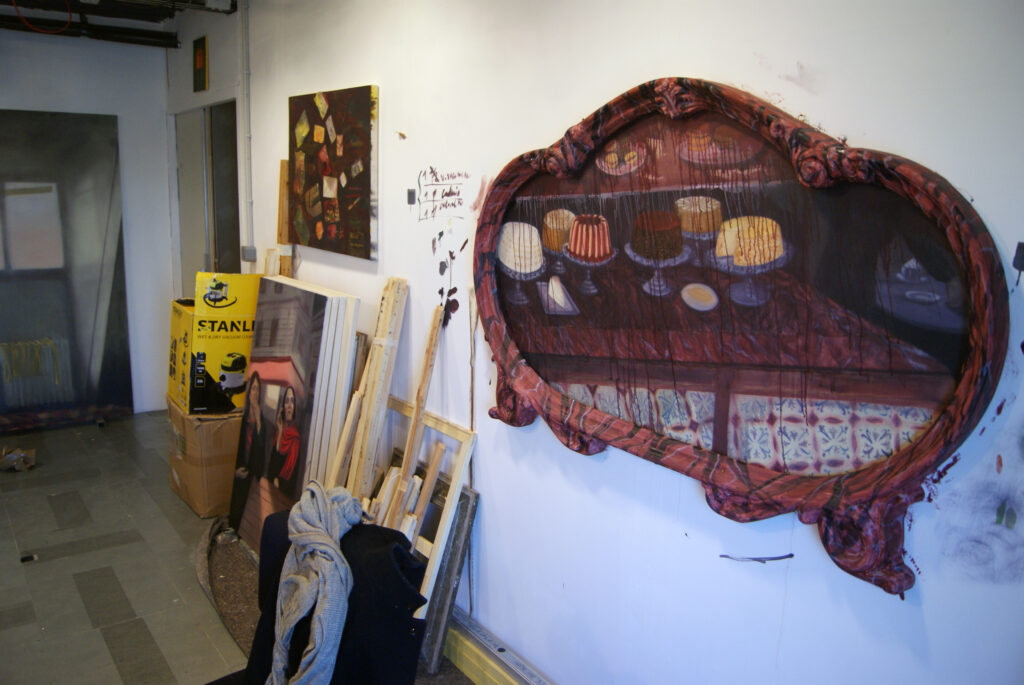 Notre peintre de Schio est loin de chez elle dans ces faubourgs d’Aubervilliers, mais son lieu d’origine la suit à la trace. Il ne se gêne pas pour ressurgir en pleine lumière, éclaircie, trouée. La peintre manipule tout un vocabulaire de formes désuètes. Des ornements, tels qu’on les sculptait dans des bois noueux, pour flanquer des têtes de lits. Et tous ces dessins à main levés exécutés sur les marges des tasses et assiettes de porcelaine. C’est tout ce qu’elle a emmené à Paris, ou presque : des bagages invisibles. Et moi de partir, avec sur les lèvres le goût de quelque thé imaginaire, bû à petites gorgées dans l’une des ces tasses immatérielles. Et moi de disparaître, dans la forêt urbaine, parmi les bambous d’Aubervilliers, où se dresse quelque ruine d’un amour avorté il y a bien des années.