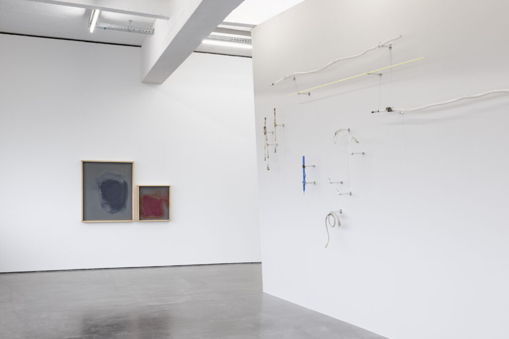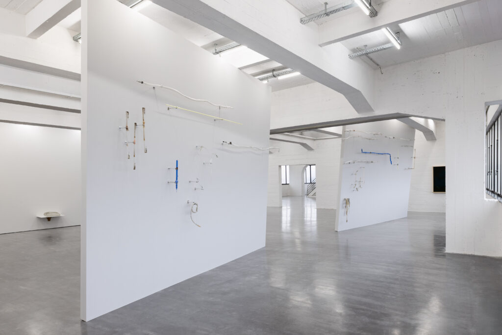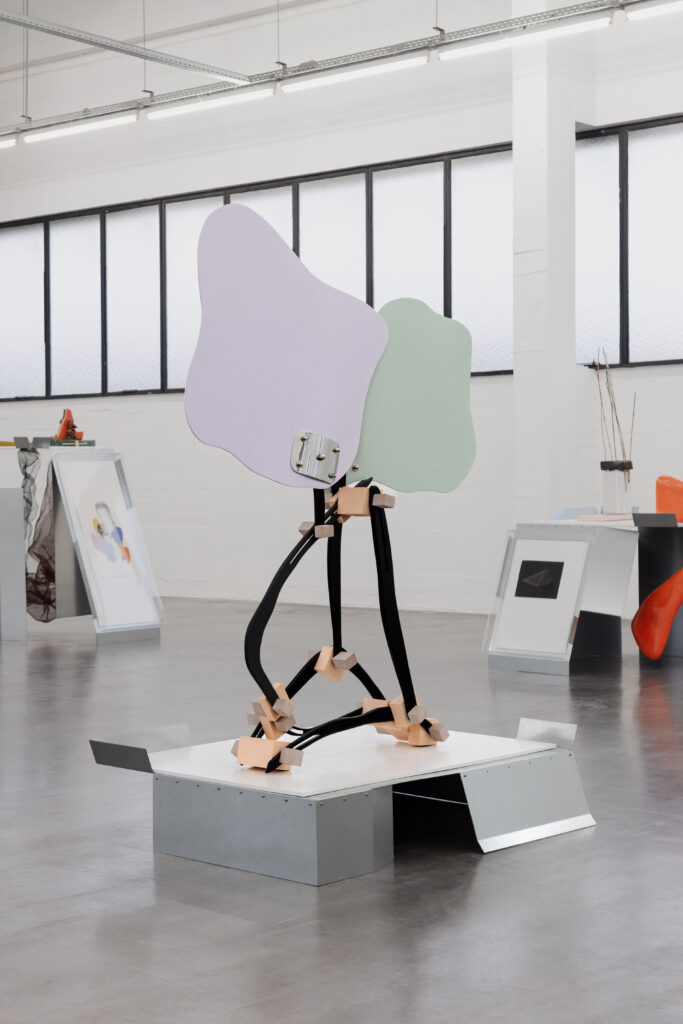 Le deuxième plateau est comparable à un jardin magistral où toutes les entités sculpturales autonomes portent le même titre « Side Leaps ». Ce que l’on voit ici éclipse un aperçu rafraîchissant de l’histoire de l’art du siècle dernier. « Sauts latéraux » est une description exacte d’une promenade impressionnante le long des « installations » qui, ingénieusement, exposent sur toutes sortes de supports/socles complexes en aluminium et en plexiglas parfaitement exécutés, des dessins qui entrent dans un dialogue intense avec des formes de toutes les matières et couleurs possibles, suspendues, accrochées, couchées ou à peine soutenues sur le sol. Nairy présente ici une fête passionnante pour un regard associatif et alerte, dans laquelle les détails prennent une importance considérable et les références au corps démantelé créent une image qui renvoie à la sculpture moderne et, plus récemment, fait un clin d’œil à la chorégraphie naissante « Disfigure Study » (1991). Il s’agissait d’une représentation révolutionnaire de la chorégraphe américaine Meg Stuart, basée sur la peinture du Britannique Francis Bacon et, plus largement, sur le processus du statut et de la place du corps dans le monde/les sociétés en pleine évolution.