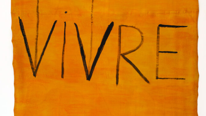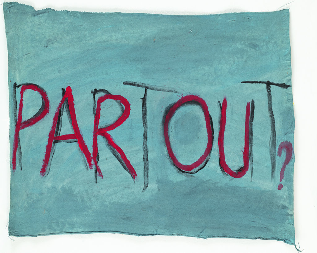 La filiation des choix esthétiques reste indicielle, et ce qui advient et apparaît comme déterminant ne déclare rien qui soit linéaire. Quand Pol Pierart déclare : « J’ai fait les beaux-arts, puis j’ai eu envie de faire tout autre chose, j’ai fait de l’art. »3, nous comprenons que l’importance de cette énonciation, ne se trouve pas tant dans l’étude du précédent que dans le projet que cette formulation vise. Cette citation de l’artiste signifie : qu’elle est drôle, qu’elle est logique tant elle est paradoxale, et qu’ici se trouverait une clé de compréhension du ressort créatif de Pol Pierart. L’artiste représente des mots à la fois scandés et murmurés. Sa peinture bien qu’éloquente s’affilie à un art pauvre. Même si l’espace du grand format sert au mieux son expression, il est question d’y suggérer un champ lexical qui développe des thèmes existentialistes, dont la prudence, la tempérance, la vitalité et le désenchantement dévisagent l’ordre intime de nos valeurs et de nos convictions. De fait, sa peinture évoquerait l’écriture d’un monde (le sien en vis-à-vis du nôtre), depuis le prisme de l’expression verbale, composée de lapsus, de fragilités, d’agilités, d’un humour correctif et rassurant. Il y a chez lui, le goût de l’oxymore et d’une communication implicite qui lui fait écrire un jeu de peintre.