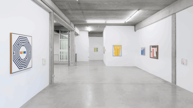 En 2021, le Mac’s Grand Hornu consacrait au peintre liégeois Léon Wuidar une exposition grandiose intitulée « A perte de vue ». Cet automne 2025, l’artiste âgé de 87 ans, nous revient à l’Ikob (Eupen) avec l’exposition « Um die Ecke », dont la traduction littérale « Dans le coin » prend – comme en allemand – au moins deux sens. C’est la punition que de nombreux enfants reçoivent à la suite d’une bêtise, c’est aussi le coin, l’angle droit d’une forme géométrique, d’un tableau. C’est encore, pourquoi pas, le début d’une consigne, d’une règle du jeu, un point de départ.